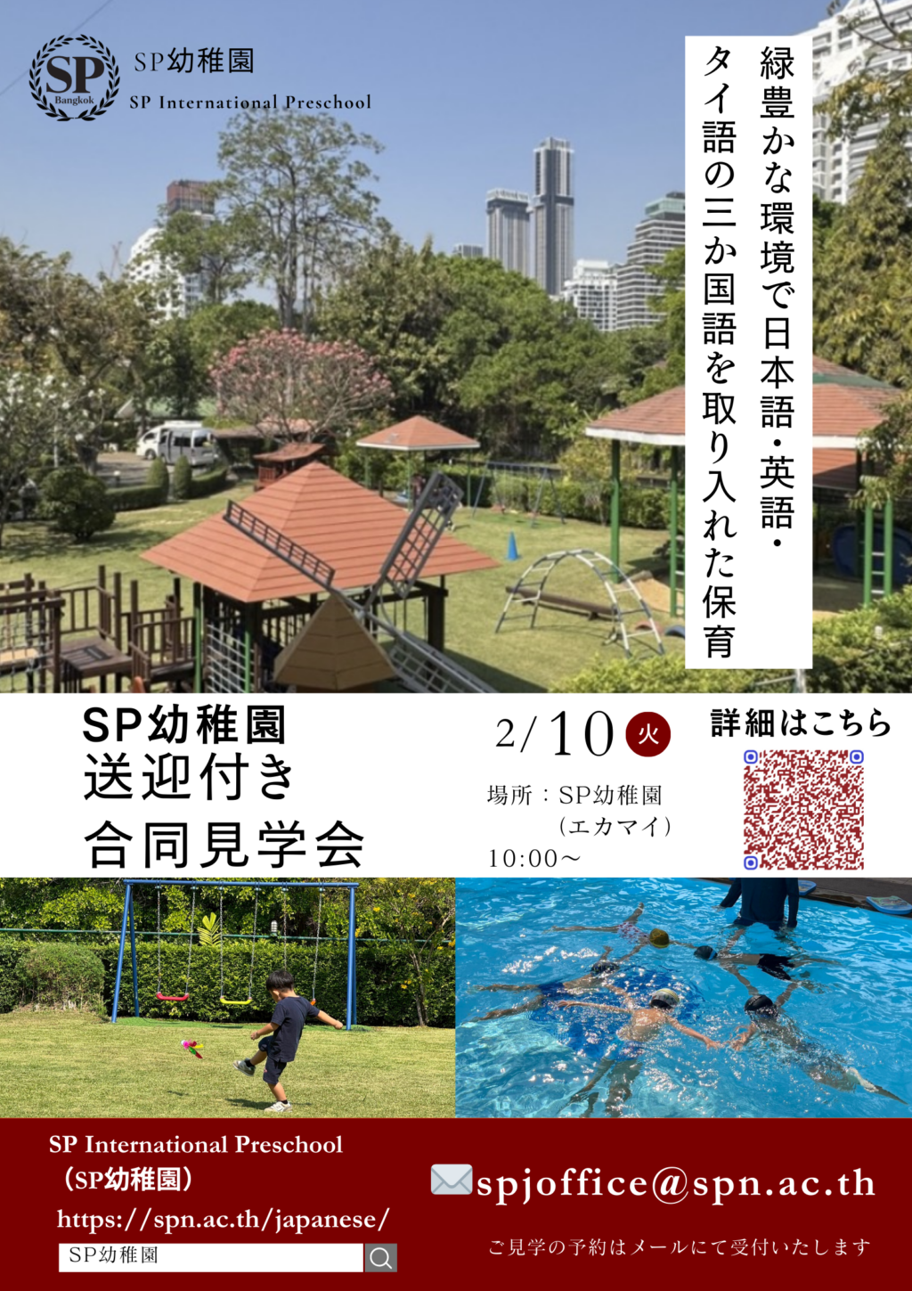 合同見学会のお知らせ 2026年1月27日 最終更新日時 : 2026年1月27日 jpnsection 2月10日(水)10時からSP幼稚園にて見学会を開催いたします。園の雰囲気をご覧いただける機会ですので、ご興味のある方はぜひお申込みください。