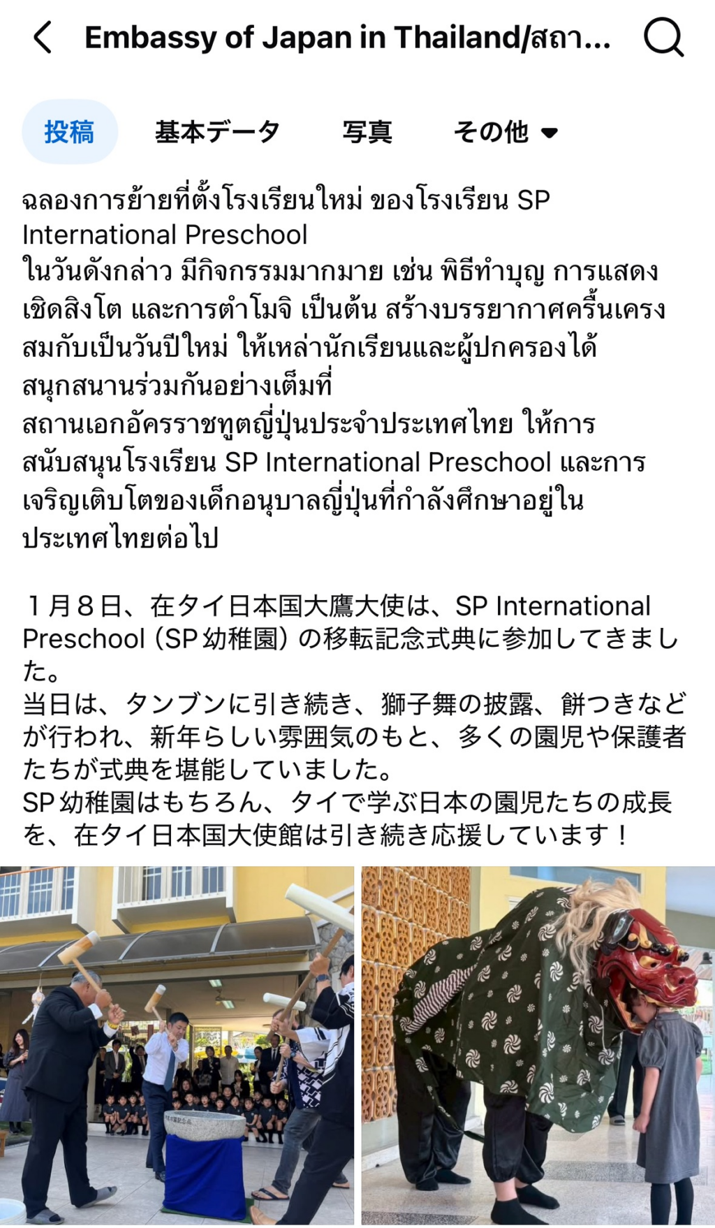 日本大使館のHPに本園の移転式典の記事が掲載されています